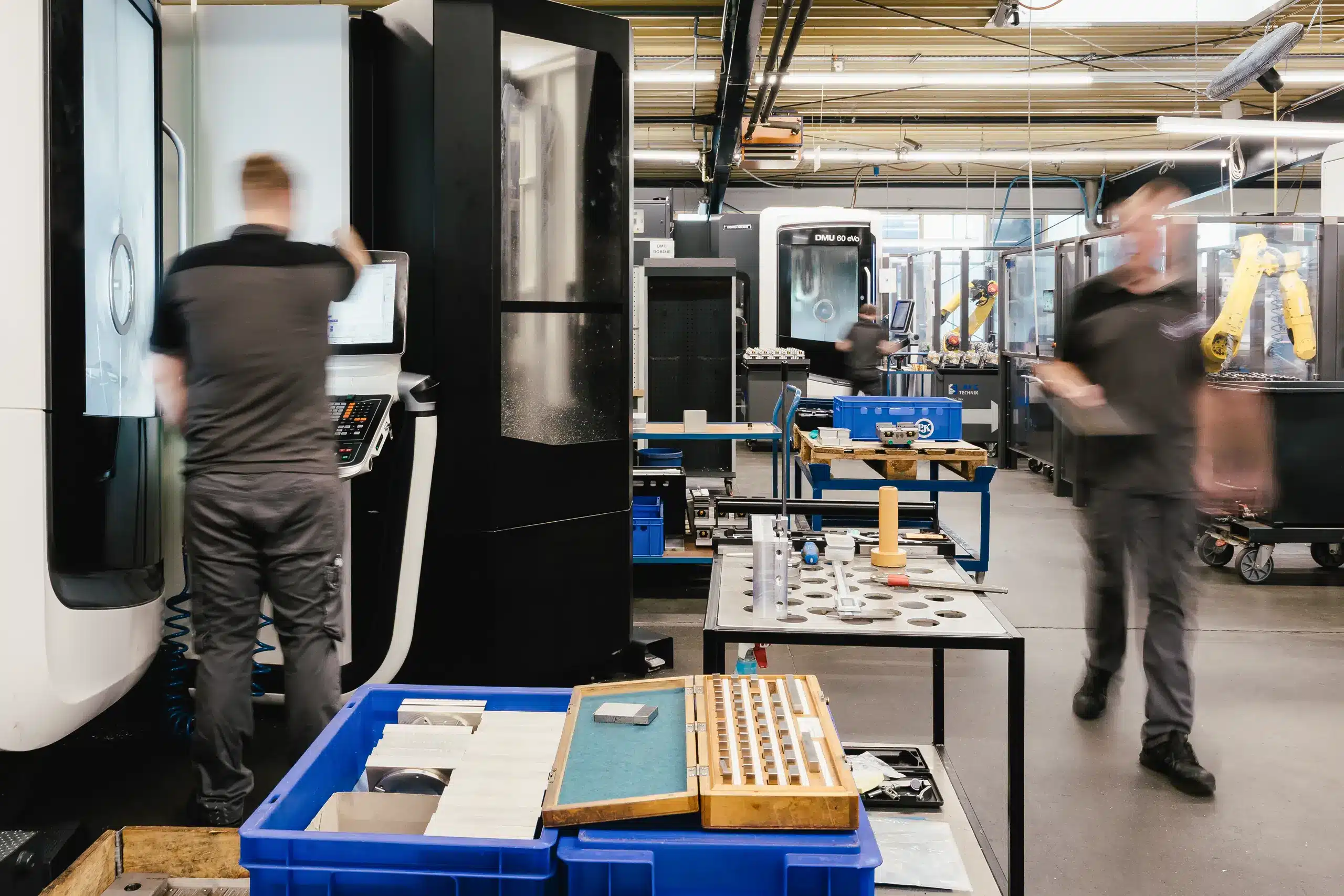 Unser Maschinenpark erlaubt den ultra-exakten Bau und Nachbau von Produkten – bis auf den 1.000stel Millimeter genau. Durch hochgradig flexible Automatisierungslösungen lassen sich Prototypen, Einzelanfertigungen und Serienanferigungen realisieren.